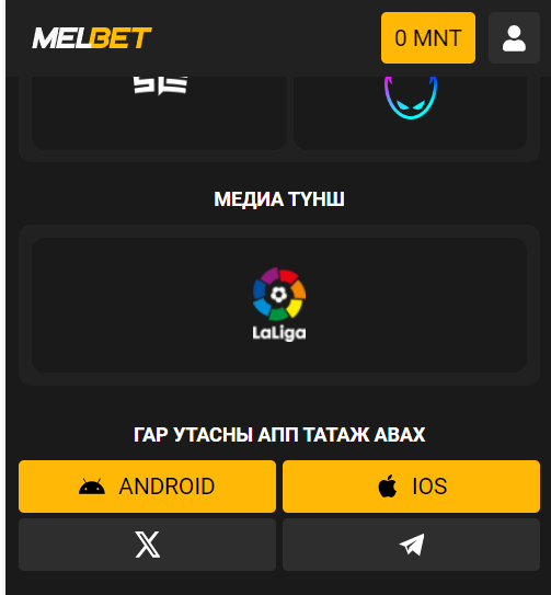 Монголын оршин суугчид Melbet дэх спорт, цахим спорт, слот, тоглоом, тэмцээн зэрэгт бооцоо тавихын тулд заавал албан ёсны вэбсайтад зочлох шаардлагагүйгээр Melbet аппыг татаж аваад ашиглах боломжтой. Энэхүү програм нь ямар ч төхөөрөмж дээр адилхан ажилладаг бөгөөд хэрэглэгчдэд хүссэн үедээ хаанаас ч тоглож, бооцоо тавих хялбар боломжийг олгож байна.